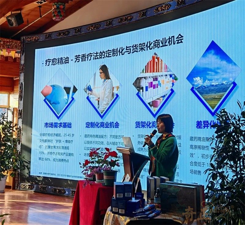 考察期間,中國香精香料化妝品工業(yè)協會副秘書長兼辦公室主任李英,系統(tǒng)介紹了協會在政策解讀、法規(guī)制定、技術創(chuàng)新、產業(yè)發(fā)展、國際合作交流及信息服務等方面的核心職能,清晰闡釋了協會作為“政府與企業(yè)間橋梁紐帶”的作用,為雙方未來更緊密合作奠定堅實基礎。奇正集團林芝雪域公司綜合事務部副經理羅珍向專家團簡要匯報了集團發(fā)展歷程、企業(yè)理念,以及各業(yè)務板塊在所屬領域取得的突出成就。針對藏藥化妝品未來具體發(fā)展方向,股份公司戰(zhàn)略規(guī)劃部總監(jiān)兼董事長助理石翠分享了以“喜瑪雅拉”為核心的特色化妝品品牌藍圖,清晰勾勒出“藏地文化+現代美學”融合的產品開發(fā)路徑;種植負責人牟思維博士從科學維度,詳細匯報了公司在西藏特色植物原料研究進展、成分功效及可持續(xù)利用方面的探索實踐,充分展現了奇正在原料端的扎實基礎與科研硬實力;研發(fā)工程師俞金蓉分享了藏藥養(yǎng)生護膚的“三因理論”與阿育吠陀理論,為產品研發(fā)提供了傳統(tǒng)醫(yī)學支撐。